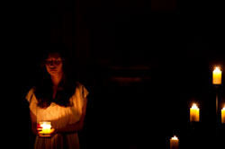 8/23に東京港区にある、美しく閑静な雰囲気の南青山ル・アンジェ教会で行われたこのイベントは、文字通り、完全に電気 を使わない真っ暗闇の中で、マイクも使わずアカペラだけで歌うという、歌唱力と声量が無いと成り立たないチャレンジでした。沖縄から北海道まで、全国から 募集されたオーディションで全国1位をを勝ち取った”うた声”を持つ、安田奈央ならではのイベントだったといえます。
