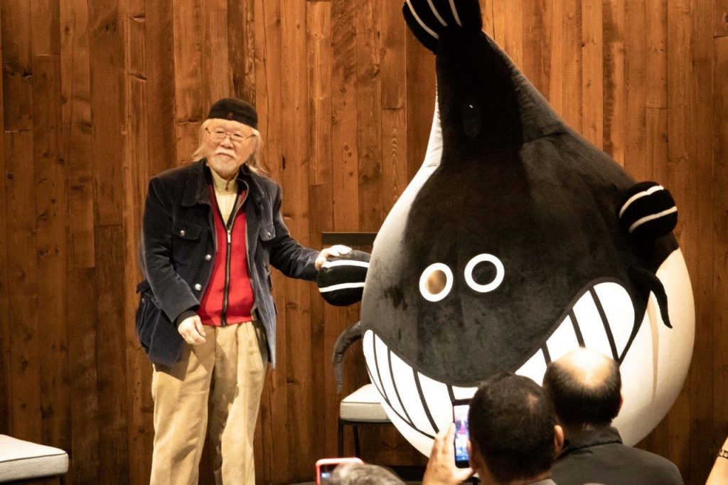 トーク・イベントは18時30分に開演。冒頭には、松本零士氏も過去に執筆していて、今年で創刊50周年を迎えた小学館ビッグコミックのキャラクター「なまずくん」が急遽お祝いに駆けつけ、続いて登場した松本零士氏と笑顔で挨拶をかわした。