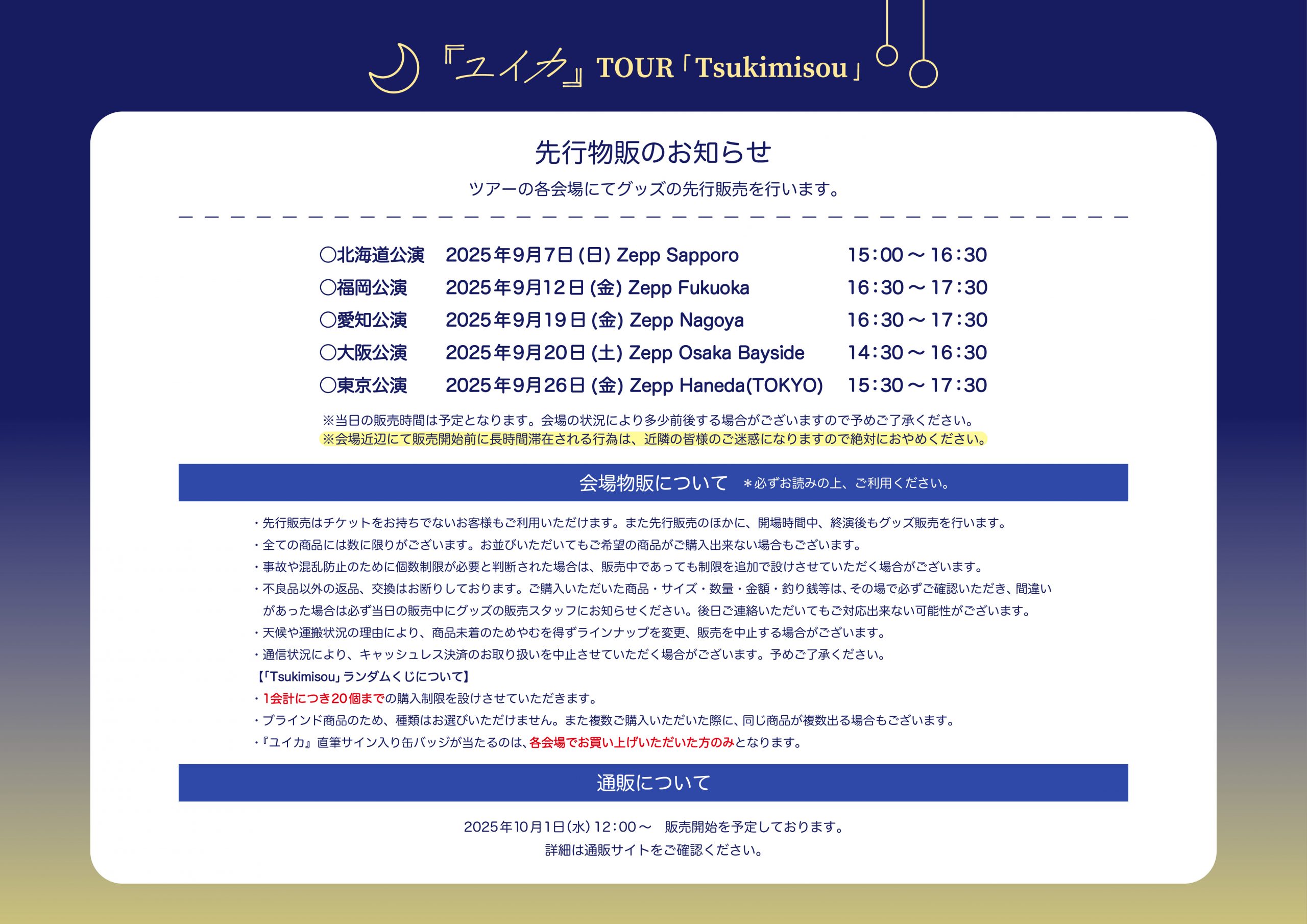 『ユイカ』TOUR 「Tsukimisou」グッズラインナップと先行物販のお知らせ