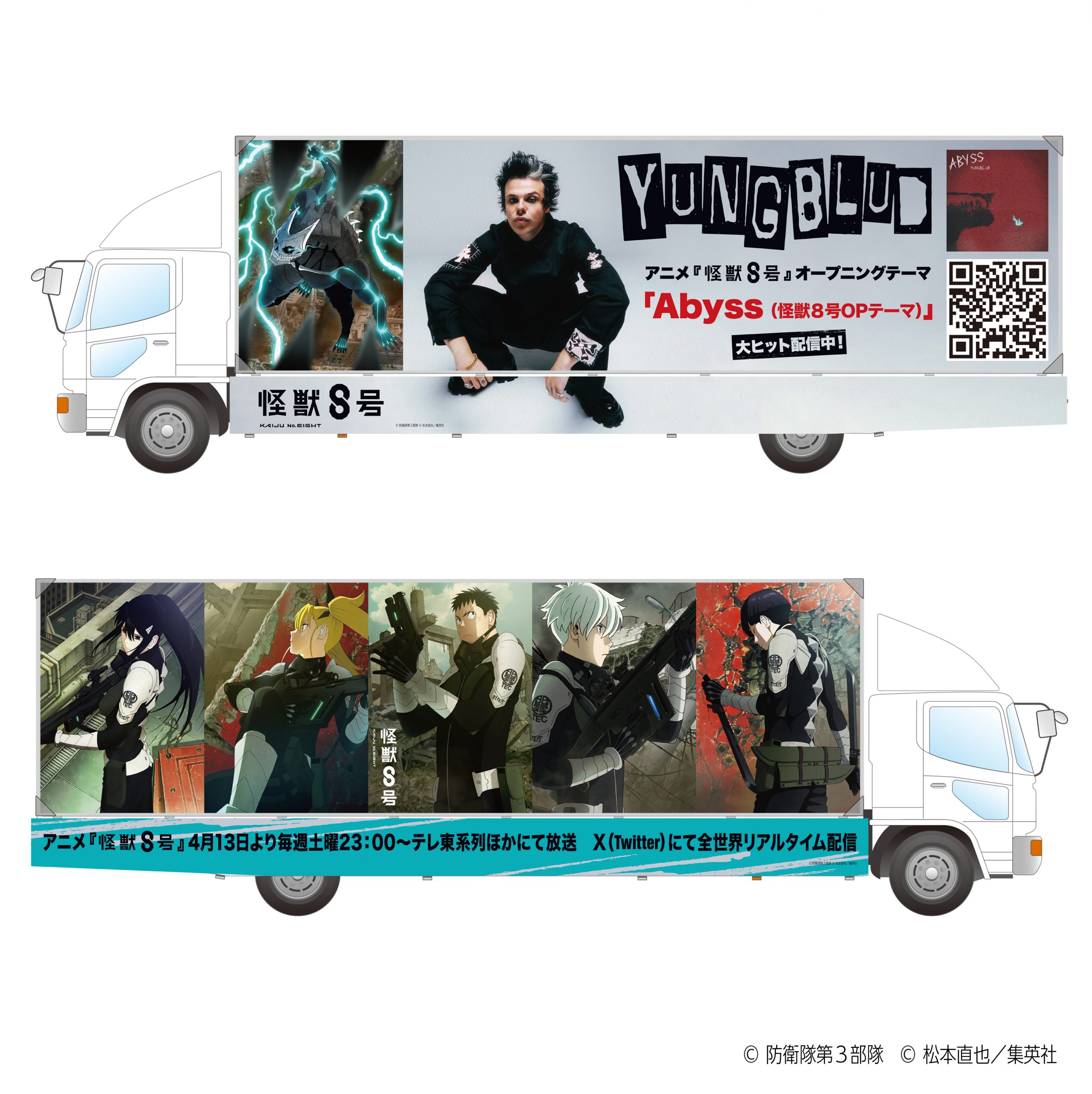 3/29(金)に配信されたアニメ『怪獣8号』のオープニングテーマ「Abyss(怪獣8号)OPテーマ」のリリースを記念して、3/30(土)よりヤングブラッド アドトラックの走行が決定しました!ぜひ探してみてください!