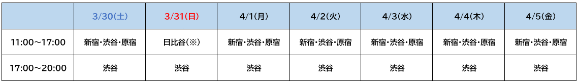 走行期間: 3/30(土)〜 4/5(金)20:00